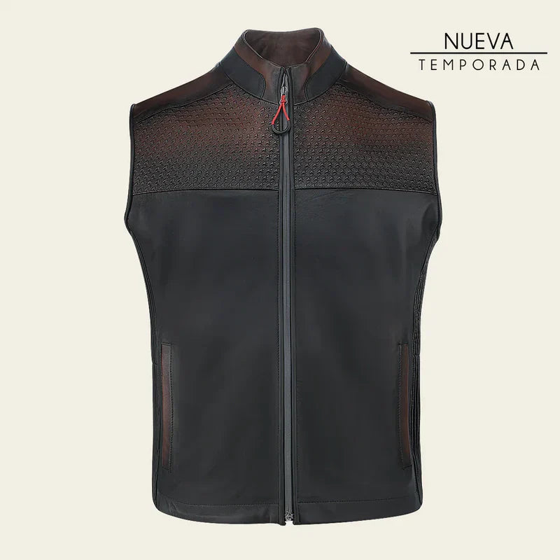 COLETE HOMEM CHALECO CUADRA MARROM COM ZÍPER